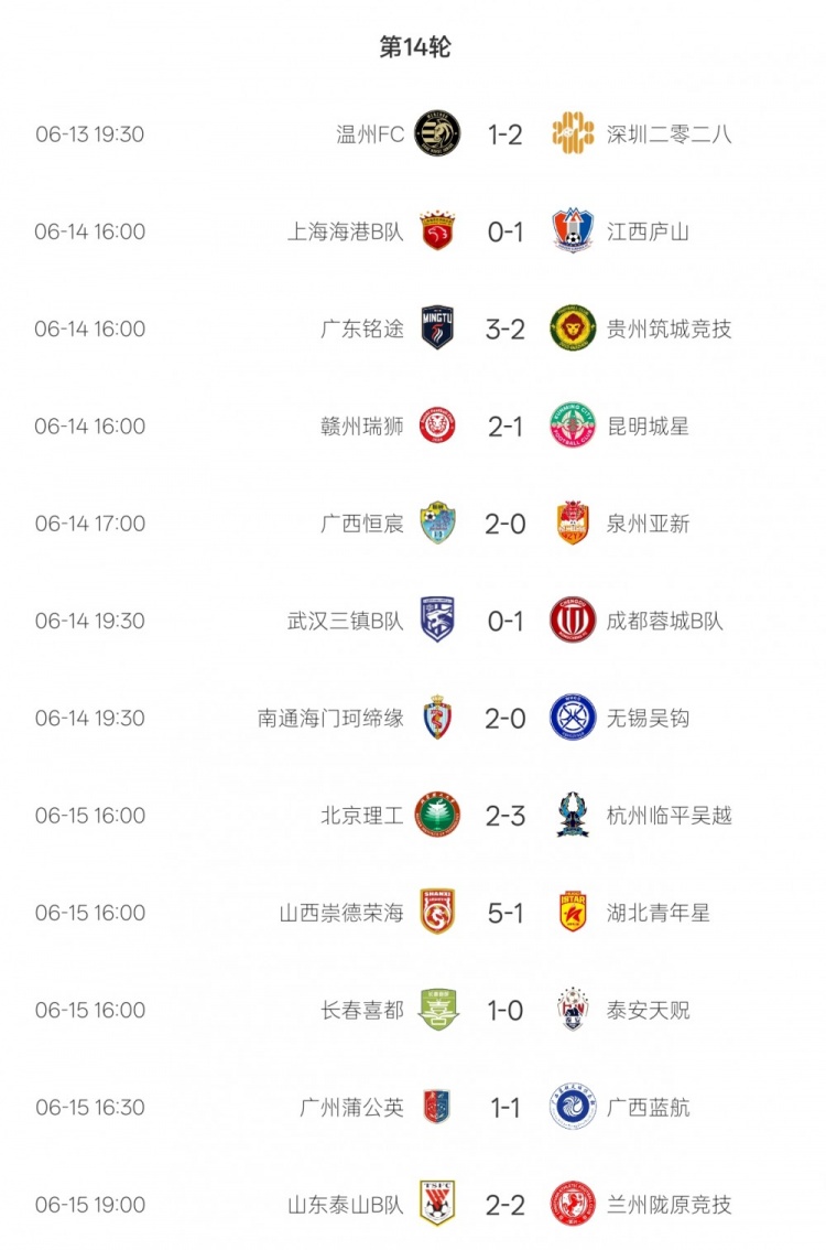 6月15日讯 中乙第14轮今日结束5场比赛的争夺,其中山东泰山B队2-2战平兰州陇原竞技。