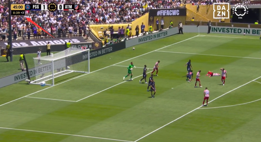 世俱杯小组赛首轮,巴黎4-0大胜马竞,上半场比赛补时阶段,巴黎反击完成破门。从多纳鲁马完成扑救,到皮球打入马竞球门,全程仅花15秒,巴黎用3次传球将球交给维蒂尼亚,后者如入无人之境完成终结。