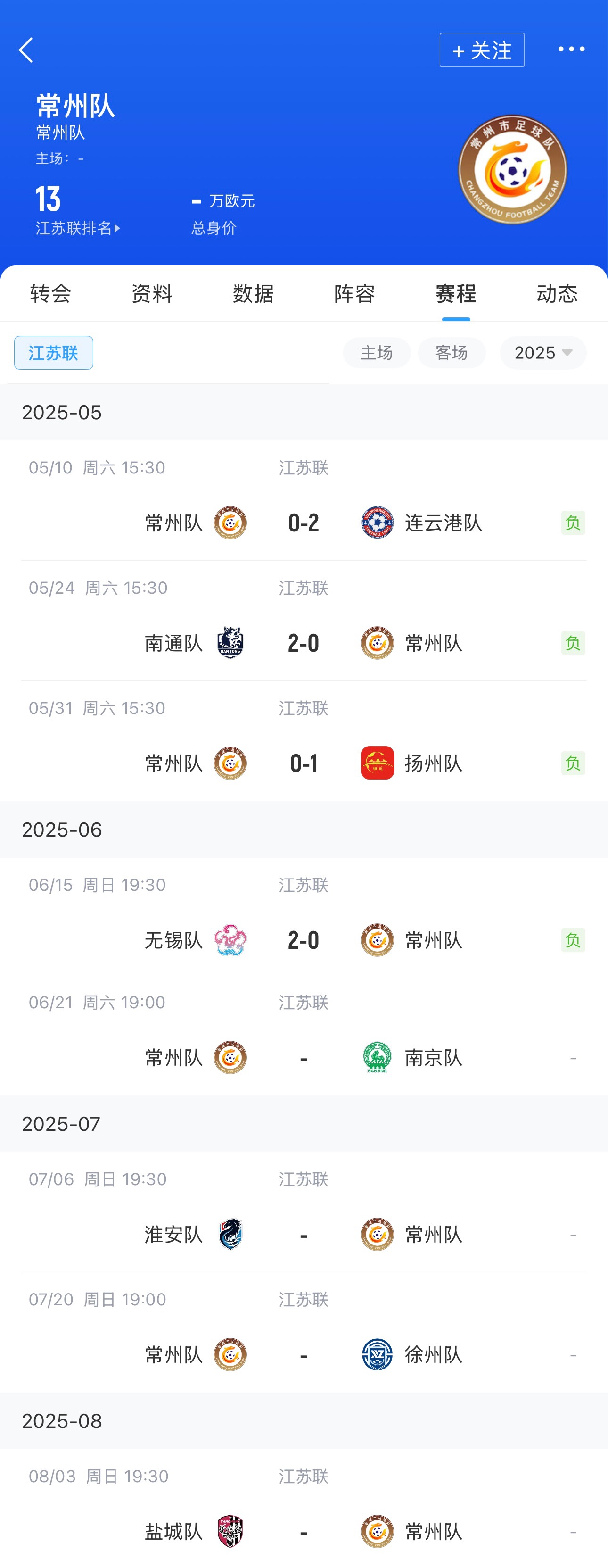 06月16日讯 苏超第4轮,常州队0-2不敌无锡队,遭遇开赛4连败稳居榜尾,且4轮一球未进。
