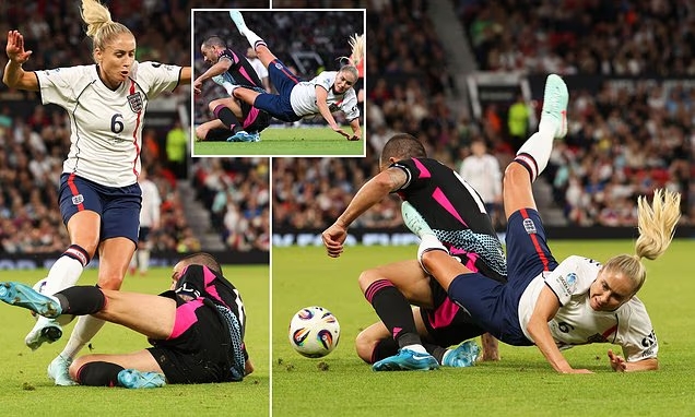 比赛尾声时段,在一次拼抢中,博努奇毫不留情地朝前英格兰女足队长斯蒂芬-霍顿放铲,得球后扬长而去,而后者则痛苦地倒在场内。