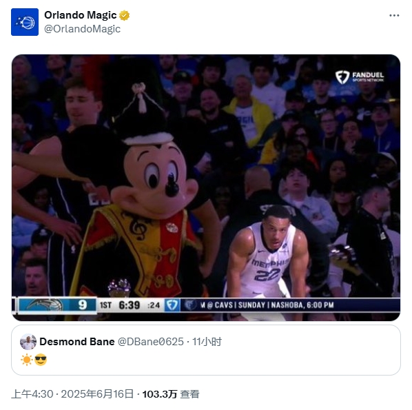 爱慕已久😍魔术官方晒米老鼠紧盯贝恩 贝恩回复:“☀️😎”