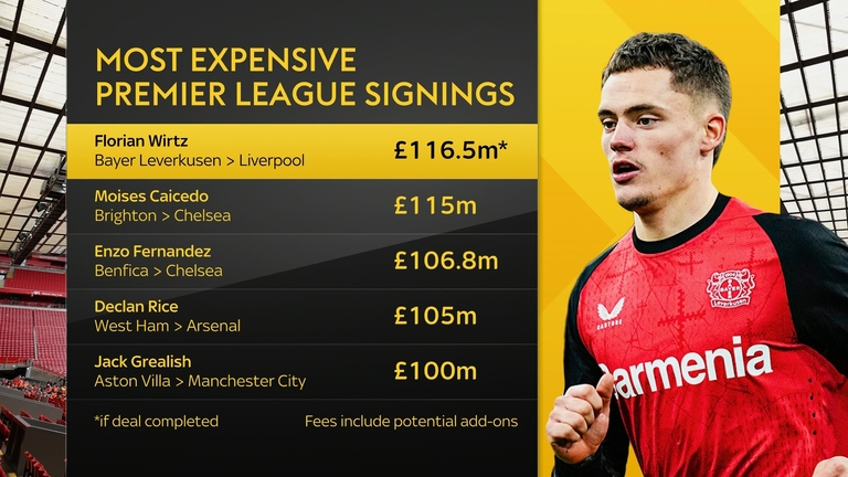 06月16日讯 据《利物浦回声报》报道,利物浦与勒沃库森已经达成协议,以总价1.16亿镑引进维尔茨,若浮动条款全部达成,维尔茨将超越凯塞多(1.15亿镑)成为英国足坛最贵转会。
