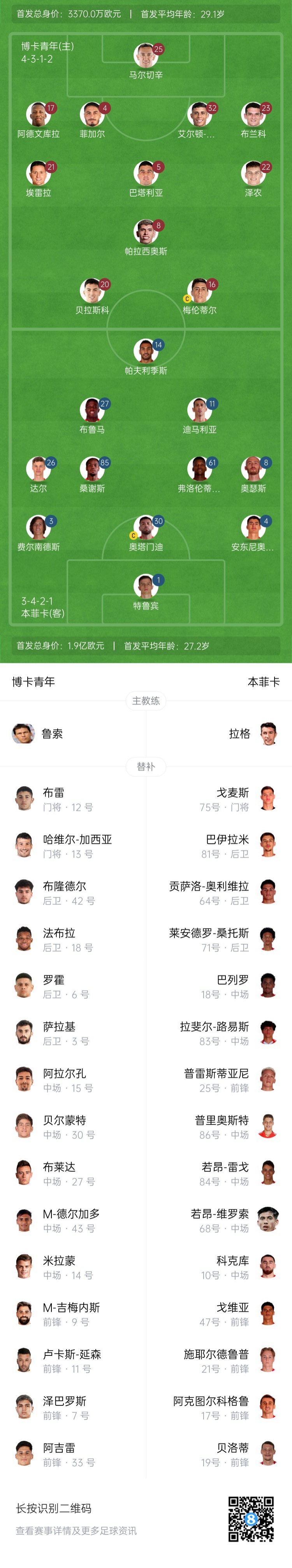 6月17日讯 世俱杯小组赛C组第1轮,博卡青年对阵本菲卡,赛前首发公布。