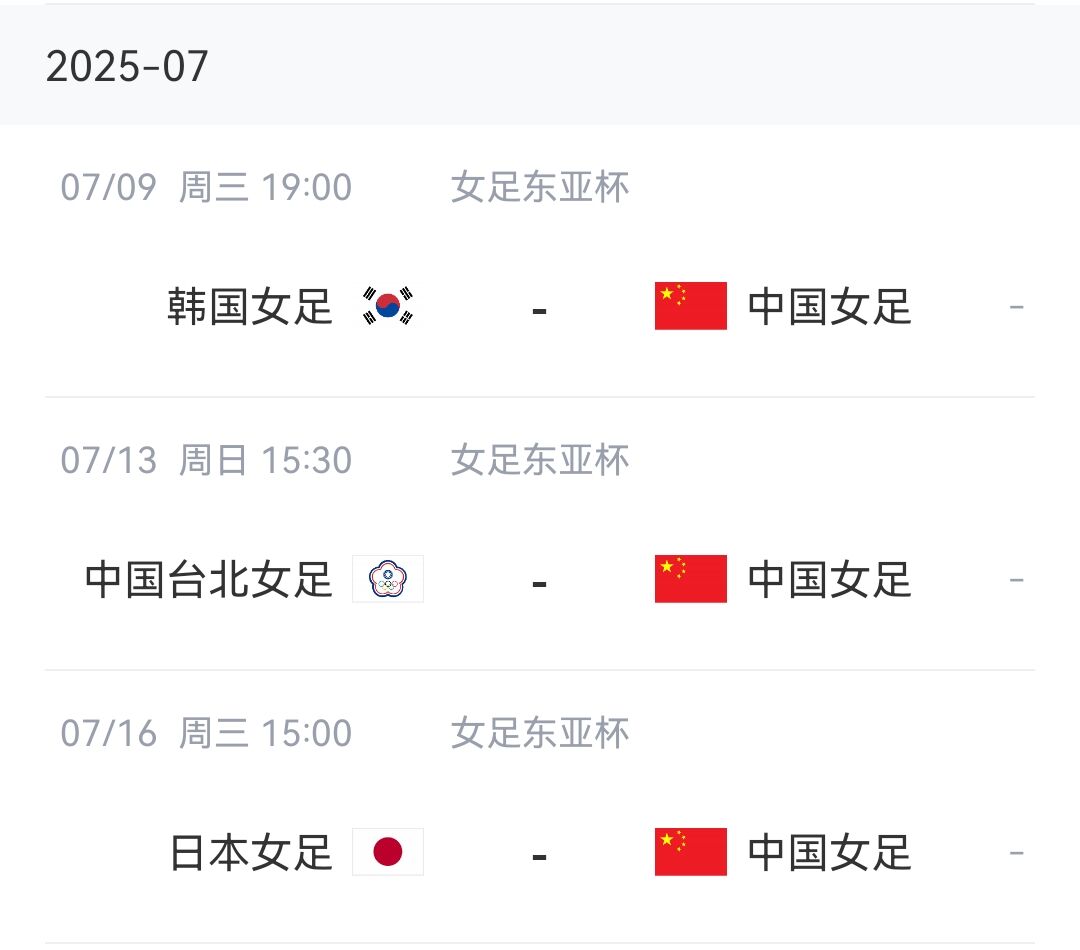 中国女足将于2025年6月24日至7月6日在青岛组织集训,随后前往韩国参加7月7日至7月17日举行的东亚杯。