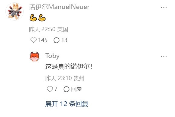 6月17日讯 周通发文谈世俱杯0-10拜仁,诺伊尔在评论区评论。