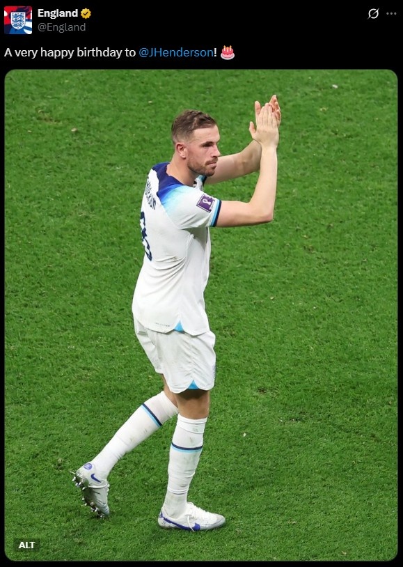 6月17日讯 今天是乔丹-亨德森的35岁生日,英格兰队和利物浦都为他送上了祝福。