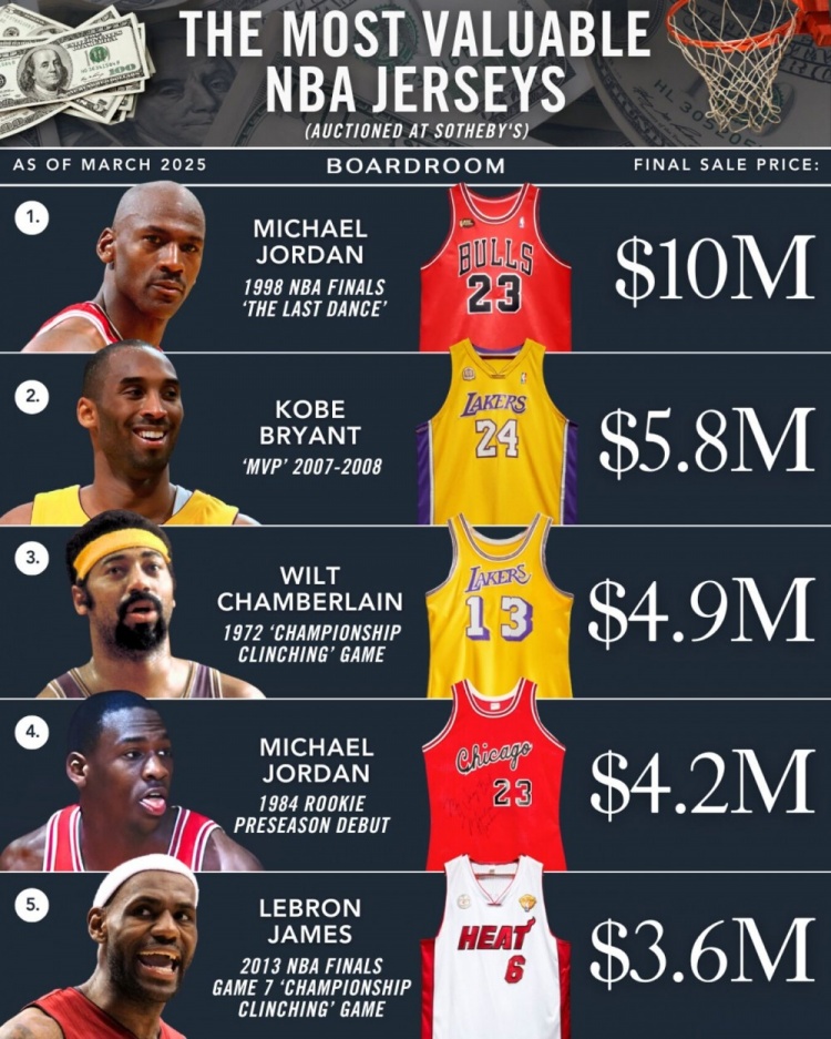5月球衣拍卖价格排行榜 乔丹&科比&张伯伦领衔前五