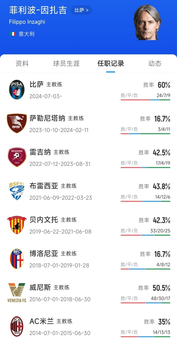刚带比萨升入意甲!官方:大因扎吉出任意乙巴勒莫新帅
