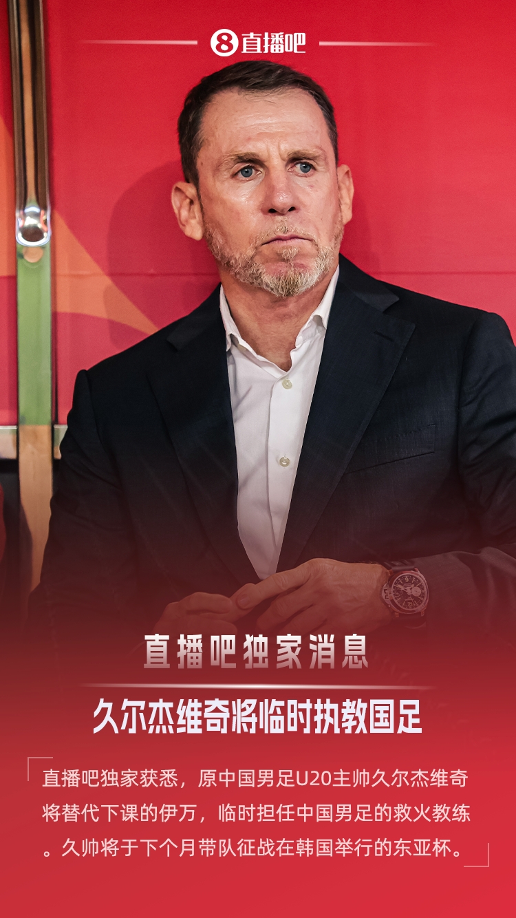 独家消息,原中国男足U20主帅久尔杰维奇将临时担任国足的救火教练,带队征战东亚杯。