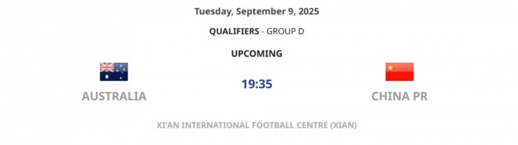 9月9日19:35 澳大利亚vs中国(西安国际足球中心)