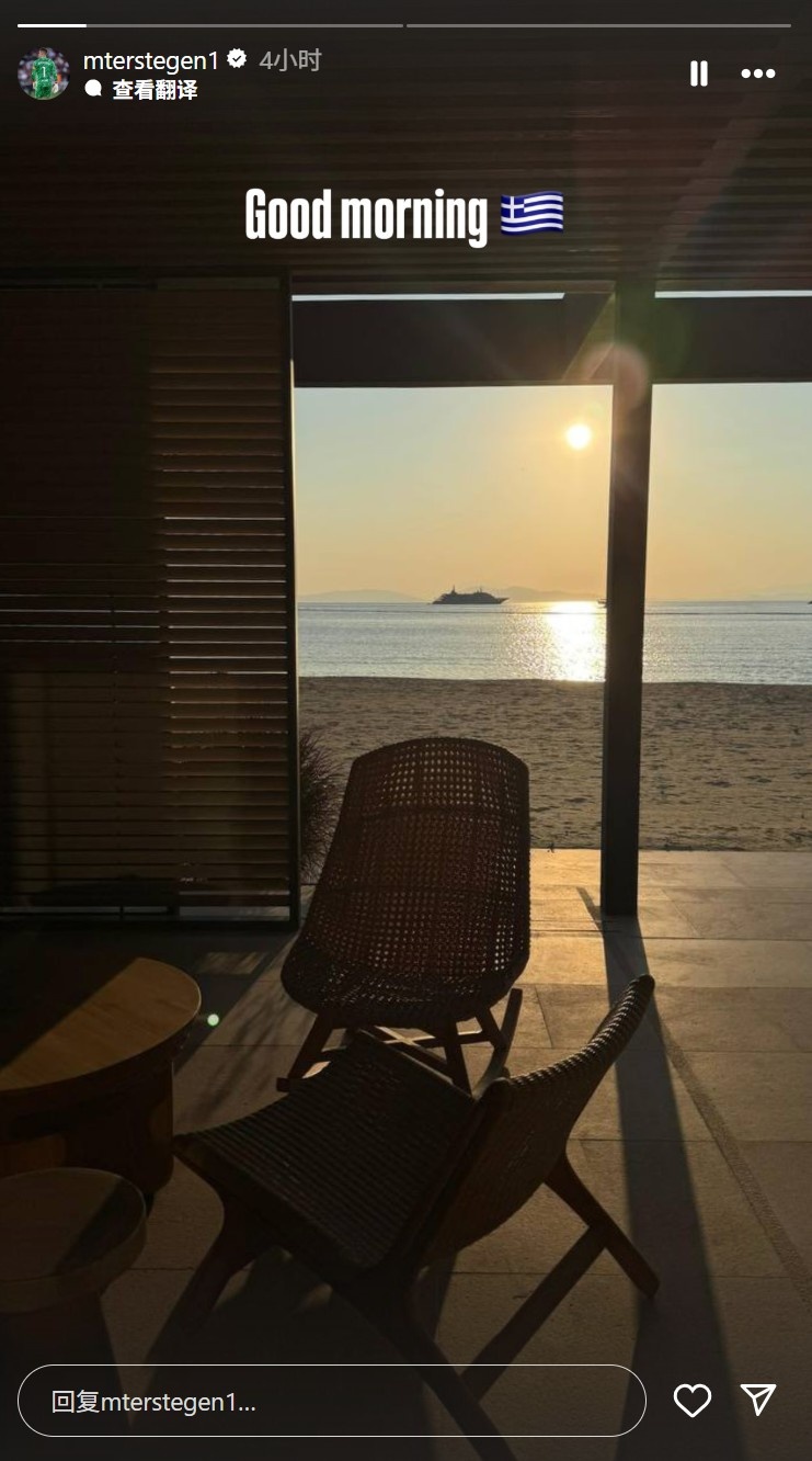 6月18日讯 巴萨门将特尔施特根更新社媒,目前他正在希腊度假。
