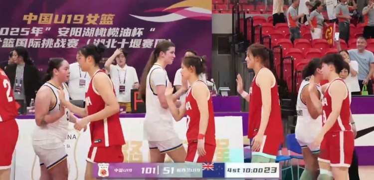 比赛开始,中国队率先打出9-3开局,冉珂嘉外线手感火热带队10-0建立主动权,随后中国队连续外线发炮首节领先16分,次节新西兰进攻端崩盘单节仅得2分,王嘉欣联手冉珂嘉连续反击,随后王嘉欣外线也保持火热手感,中国队半场直接领先到35分。下半场,新西兰进攻端还是不在状态,徐紫奇里突外投连砍6分带队11-1扩大到40分以上领先,新西兰回应8-0止血,末节双方展开拉锯战,蒋紫涵里突外投添分,冉珂嘉连续反击保持住40分以上领先,最终中国女篮U19以101-51的比分大胜新西兰U19。