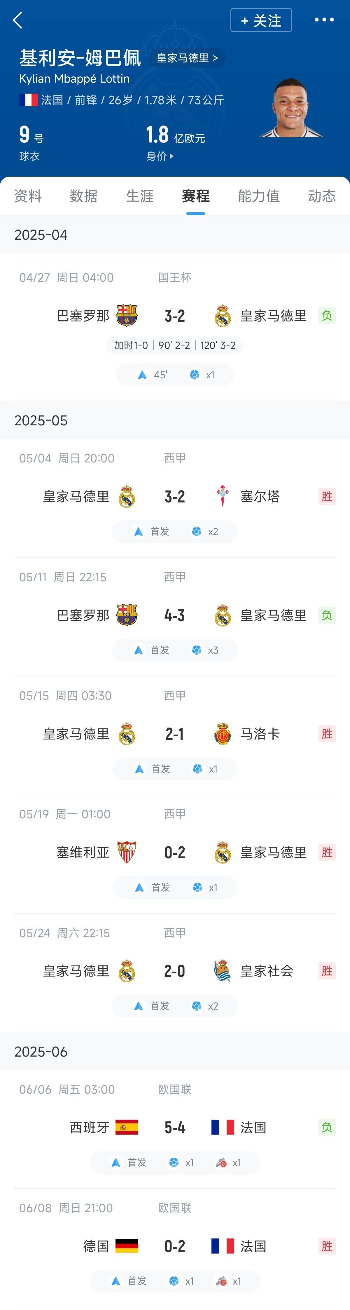 队危速归😭皇马此前6场14球姆巴佩独揽10球,本场缺席锋线乏力