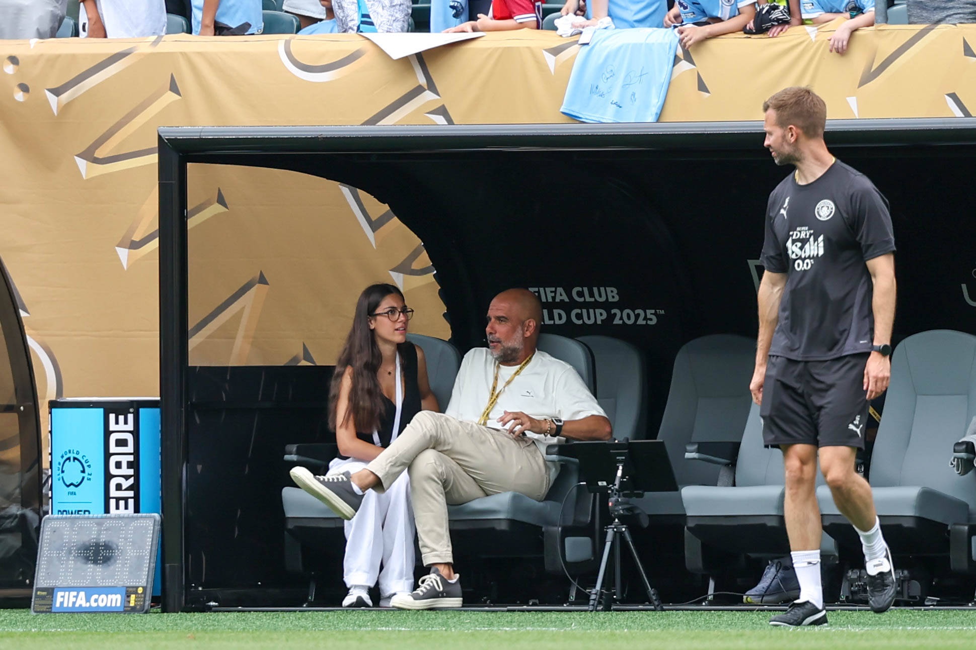 特别的助教☺️瓜迪奥拉17岁的小女儿现身替补席,与父亲一起交流