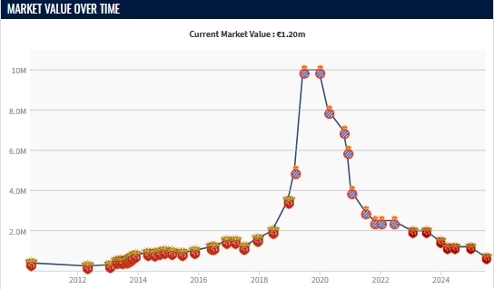 巅峰曾1000万欧!33岁武磊身价跌破100万仅剩70万,深受伤病困扰