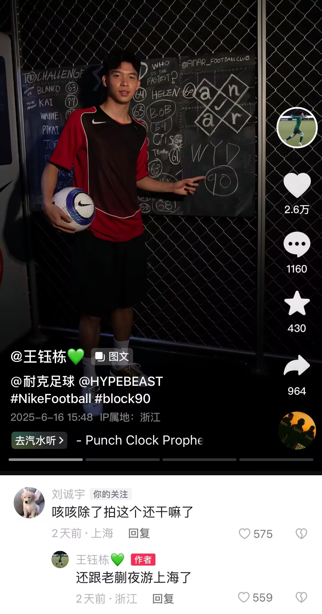 06月19日讯 蒯纪闻昨晚刚上演中超首助,帮助上海海港客场3-1击败河南,社媒评论区王钰栋、刘诚宇出没。