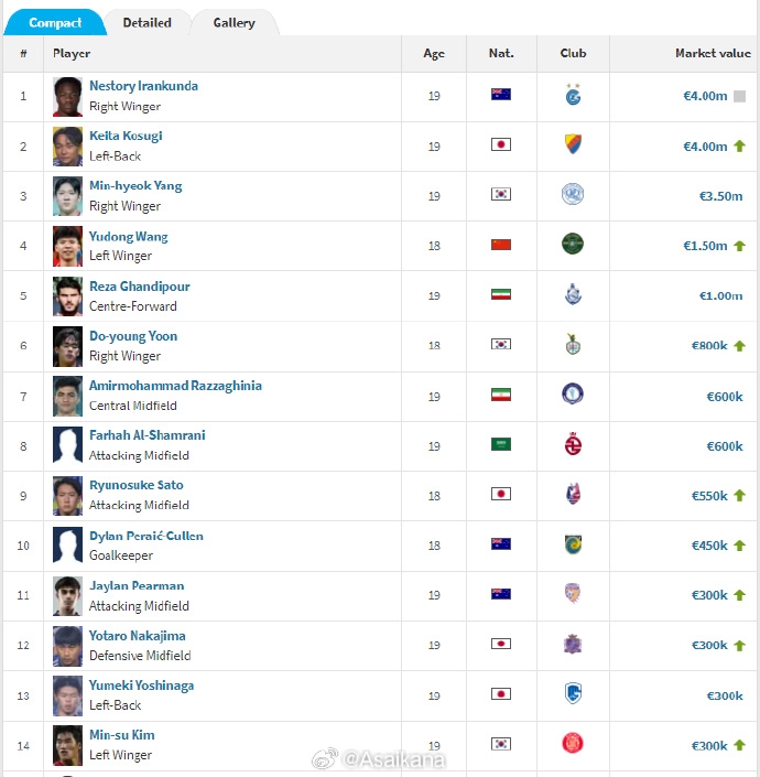 06月19日讯 德转今日进行例行身价更新,中国年轻国脚王钰栋的身价上涨到150万欧元,在全球2006年出生的球员里排名第126位,在全亚洲排名第4位!