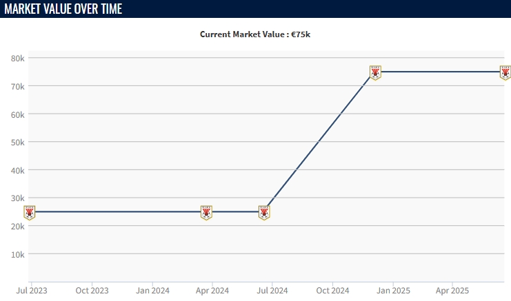 06月19日讯 德转今日更新中国联赛球员身价,山东泰山B队小将依木兰身价没有变化,仍然为7.5万欧元。