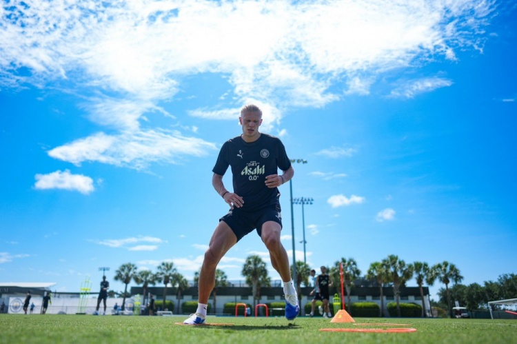照片中的哈兰德一丝不苟,在烈日下刻苦训练。哈兰德社媒配文:我的快乐天空⚽️☀️🤩
