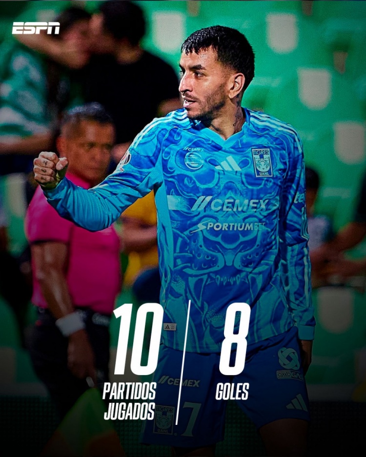马竞出品😂安赫尔-科雷亚加盟墨超老虎大学后,10场比赛打入8球