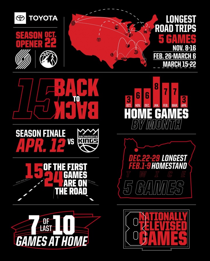 开拓者新赛季赛程:8场全美直播 15场背靠背 揭幕战打森林狼