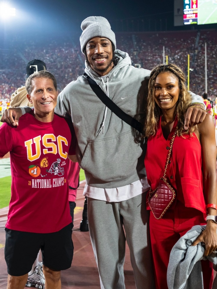 永远的特洛伊人!德罗赞回母校南加大看橄榄球 与校友开心互动