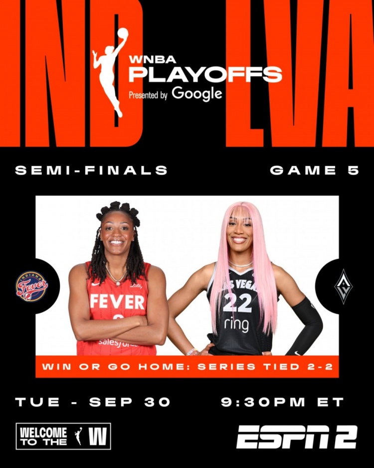 10月1日讯 WNBA季后赛半决赛G5,拉斯维加斯王牌今日坐镇主场迎战印第安纳狂热,双方在前四场比赛战至2-2平,因此本...