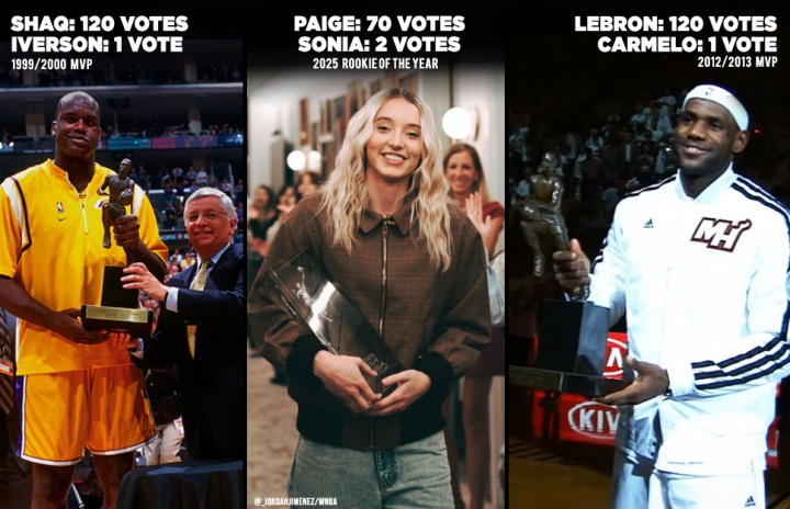 1999-2000赛季MVP,奥尼尔收获了121张选票中的120张选票,艾弗森获得另外一张MVP选票2012-13赛季M...
