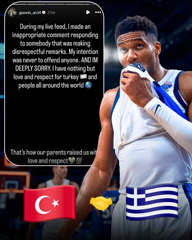 字母哥为涉土耳其不当言论道歉:绝非本意 父母教育要尊重他人