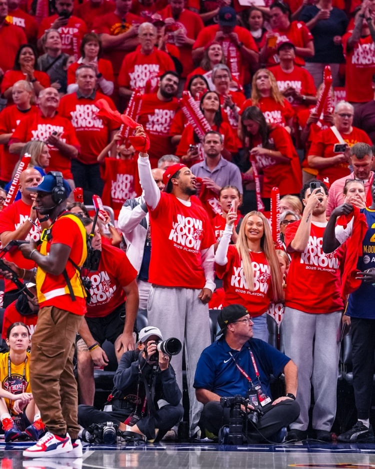 印城代言人!哈利携未婚妻现场助威狂热队季后赛比赛!