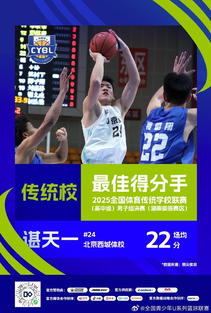 2025传统校联赛最佳得分手:谌天一 最佳篮板手:赵云鹏