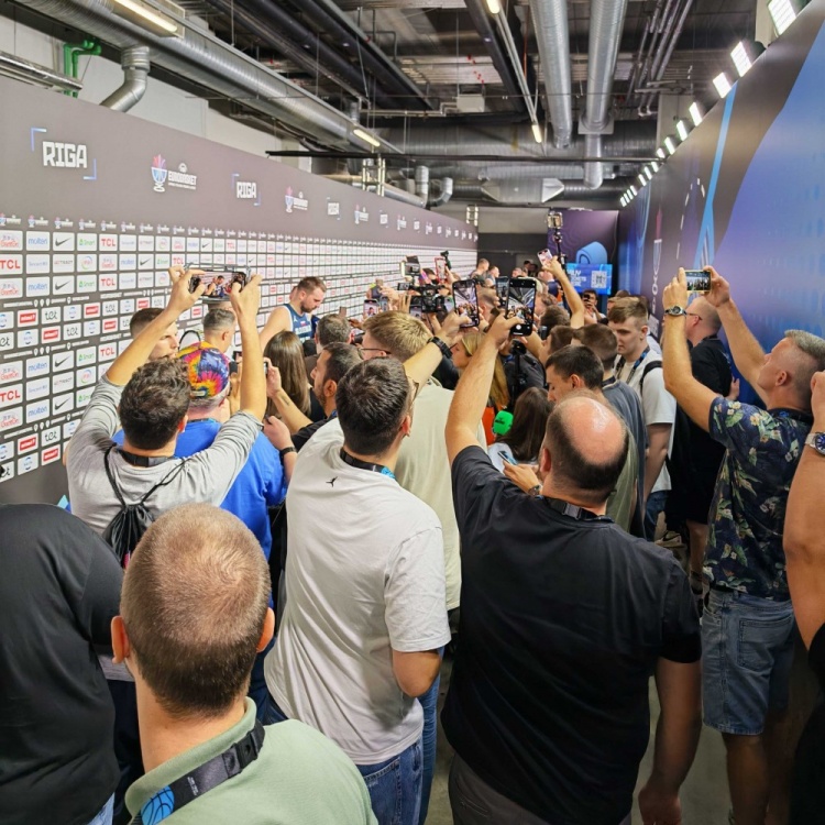 这就是人气!东契奇赛后接受采访 混合采访区被围得水泄不通