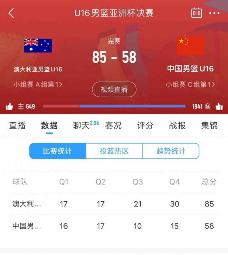 输了27个篮板&丢16个前场板!中国不敌澳大利亚获U16亚洲杯亚军