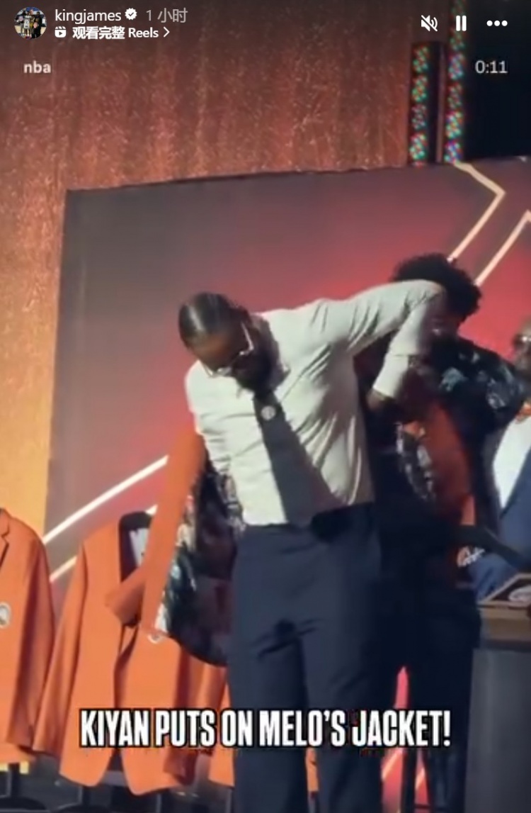 甜瓜儿子基扬为父亲穿上名人堂夹克!詹姆斯INS转发庆祝