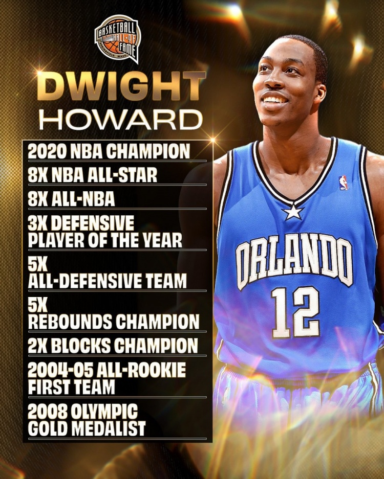 名人堂官方晒霍华德生涯荣誉图:20年总冠军+3次DPOY+5次篮板王