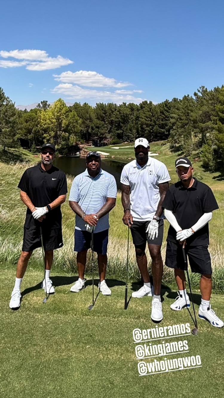 如此热爱!詹姆斯晒与友人冒着38.9度高温练习打高尔夫