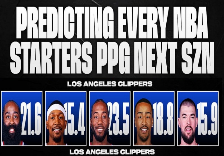 美媒预测下赛季快船先发场均得分:小卡23.5&哈登21.6&比尔15.4