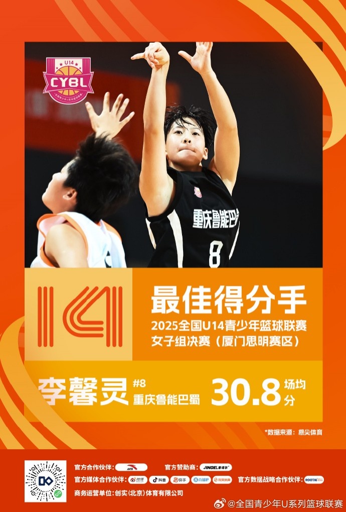 2025年全国U14青少年篮球联赛女子组【单项最佳】公布!🏀 最佳得分手: 李馨灵(重庆鲁能巴蜀) 场均30.8分🏀 最...