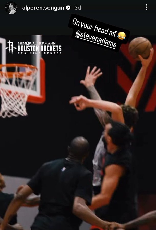 哈哈!申京隔扣&颜射亚当斯后被后者锁喉 社媒晒照挑衅:就隔扣你