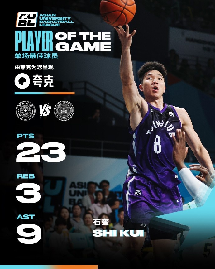 石奎隰泰诚同砍20+助清华晋级4强 石奎两记三分救主&当选本场最佳