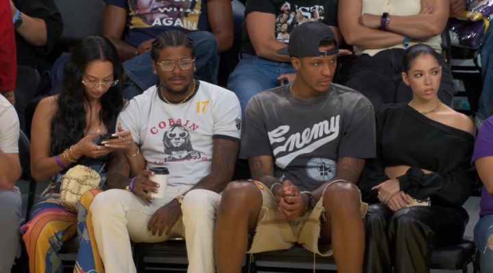 杰伦-格林携40岁老Baby与小贾及其女友场边观战飞翼VS火花