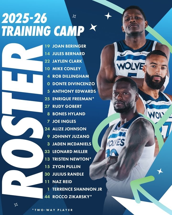 森林狼公布新赛季训练营名单:华子戈贝尔兰德尔领衔 共21名球员