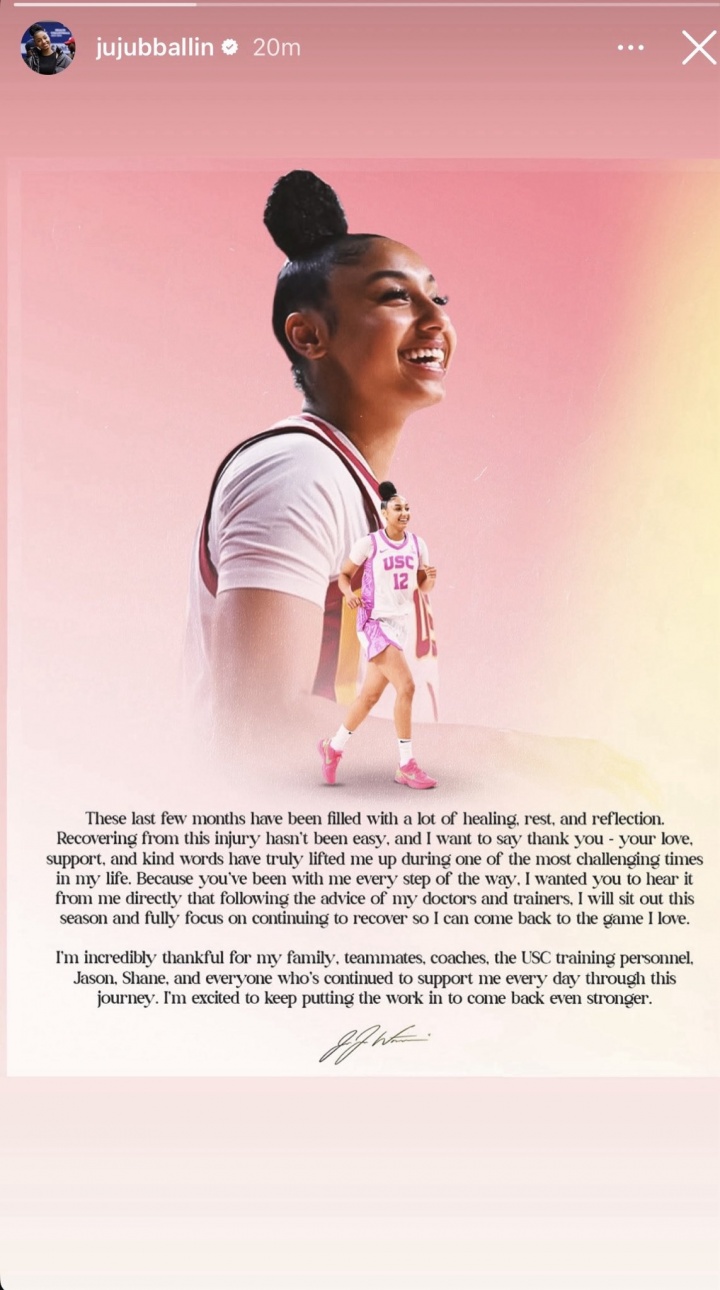 09月29日讯 2027年WNBA状元秀热门人选,NCAA女篮球星,南加州大学王牌朱朱-沃特金斯今日在社交媒体上宣布,自...