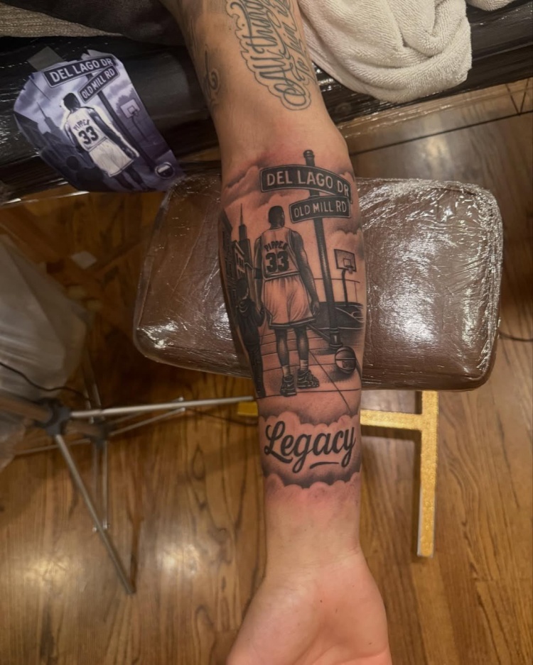 9月28日讯 灰熊球员小斯科蒂-皮蓬在手臂上纹了一个致敬父子感情的纹身图案。图案是父亲皮蓬牵着小时候自己走路时的背影、下...