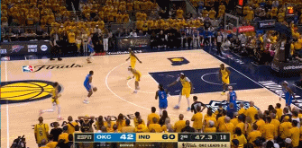 两队半场比分——步行者64-42雷霆(第三节:雷霆投篮6-0,步行者投篮9-1)...
