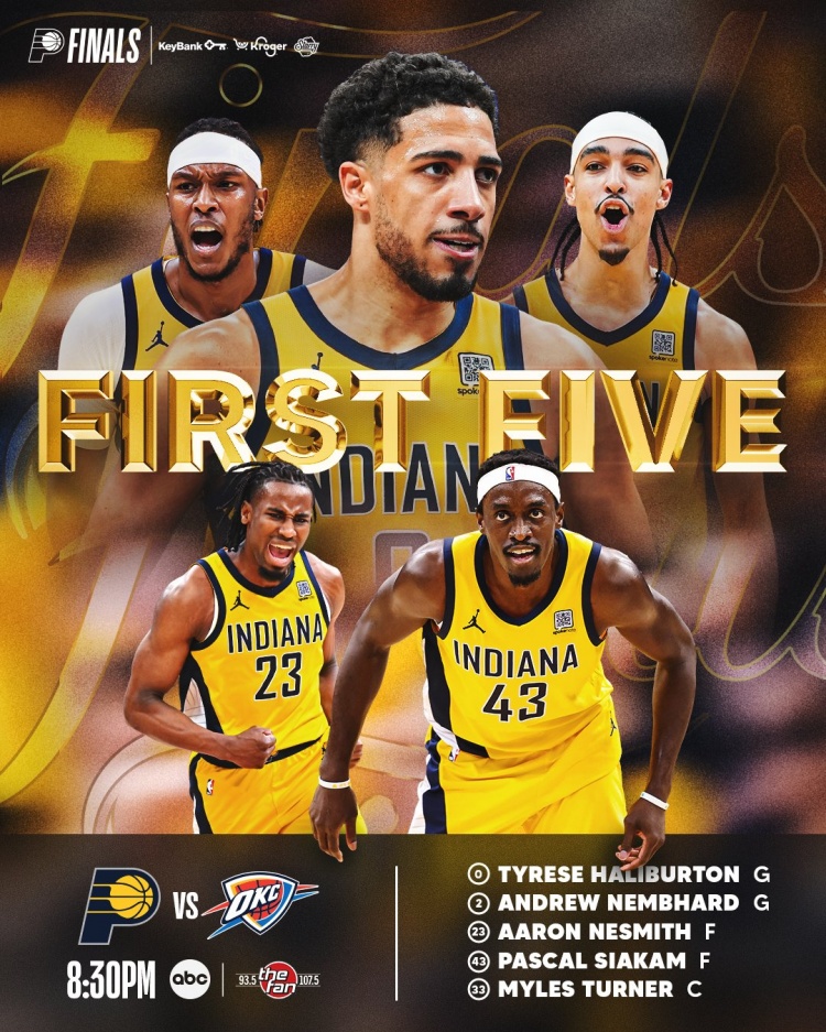 6月20日讯 今天上午8:30,NBA总决赛G6在印城打响,赛前步行者公布了本场首发阵容。哈利伯顿依旧首发出战,与之搭档...