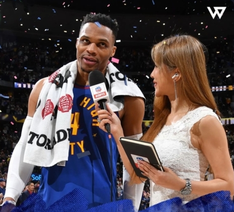 06月18日讯 今日NBA球星拉塞尔-威斯布鲁克更新了社交媒体,晒出了他接受中国记者周玲安的采访照片,并配文:“上帝让我...