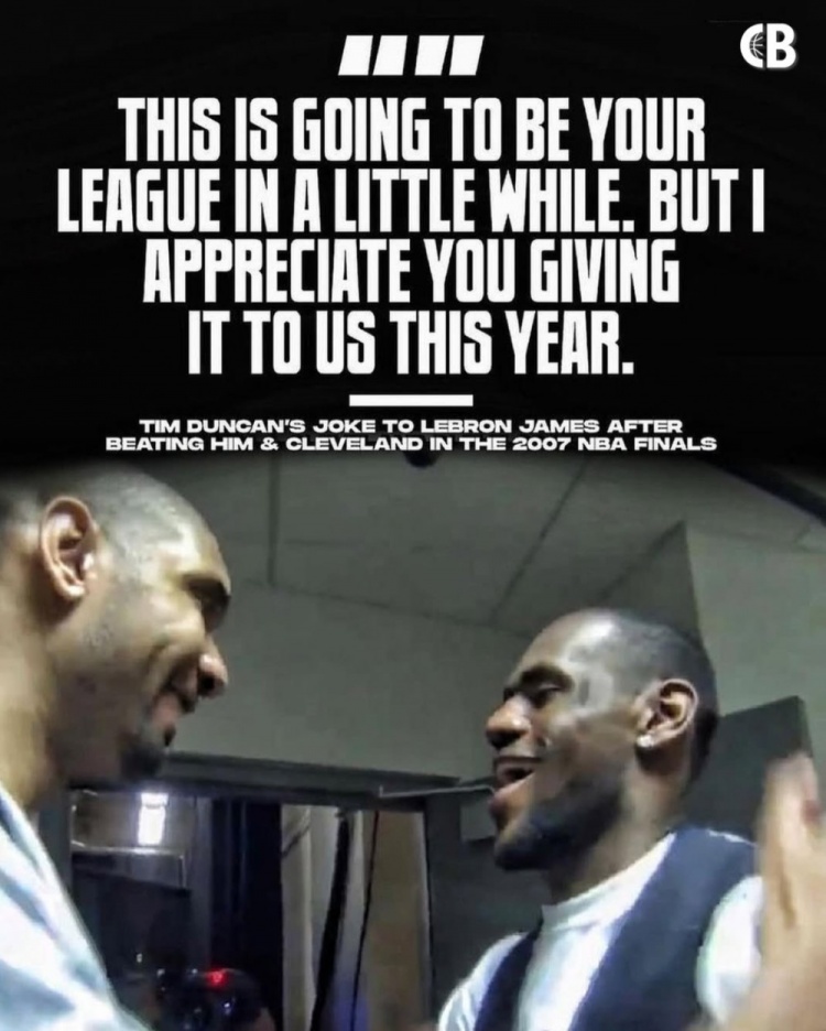 18年前的今天:马刺4-0横扫骑士夺冠 邓肯→詹姆斯:未来是你的
