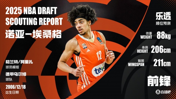 姓名:诺亚-埃桑格(Noa Essengue)出生日期:2006年12月18日位置:小前锋/大前锋球队:德甲Ratiop...