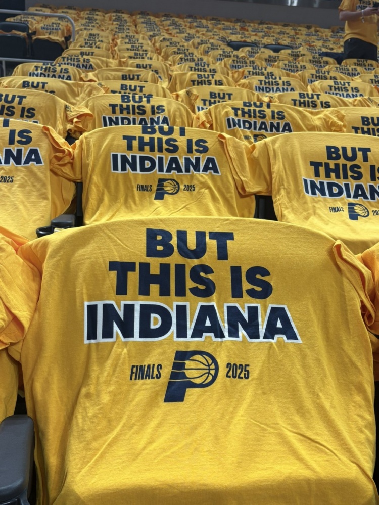 黄色海洋💛步行者主场座位铺满助威T恤 印字“这可是印第安纳”